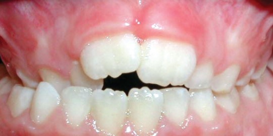 - Anterior crossbite: one or more upper front teeth bite behind the lower ones.