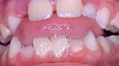 - Tongue poking between teeth when swallowing